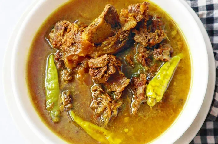Setelah semua bumbu terkumpul kemudian dicampur dengan daging kambing dan dimasak dalam waktu yang lama. Hasilnya adalah hidangan daging kambing yang empuk serta kuah pekat berwarna kuning kecoklatan.