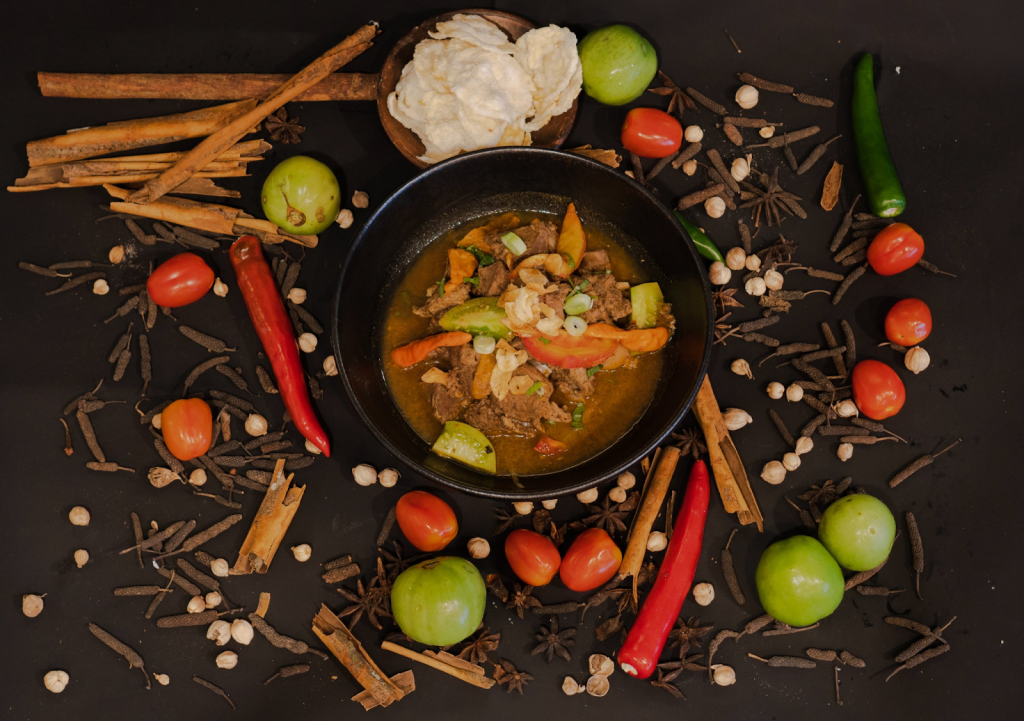 Rempah adalah jiwa masakan Indonesia. Gecok Kambing pun demikian, dibuat dengan 25 bumbu dan rempah pilihan dimana cabe jawa, merica, dan kayu manis menjadi andalannya.