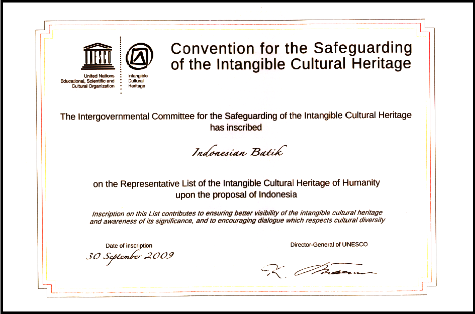 Batik merupakan seni tradisional yang mendunia. UNESCO (United Nation Educational Scientific and Cultural Organization) pun sudah mengakui batik sebagai Warisan Kemanusiaan untuk Budaya Lisan dan Nonbendawi sejak 2 Oktober 2009. Berdasarkan pengakuan tersebut maka presiden Susilo Bambang Yudhoyono menjadikan tanggal 2 Oktober sebagai Hari Batik Nasional.